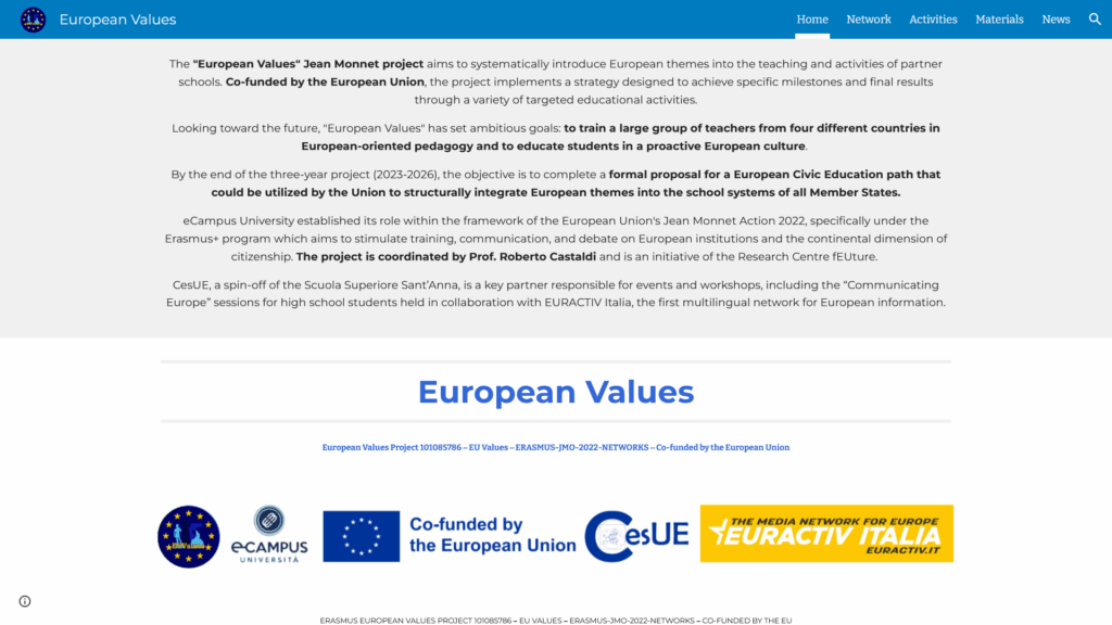 https://www.focuseurope.it/category/universita-e-scuola/eu-values/ Progetto European Values